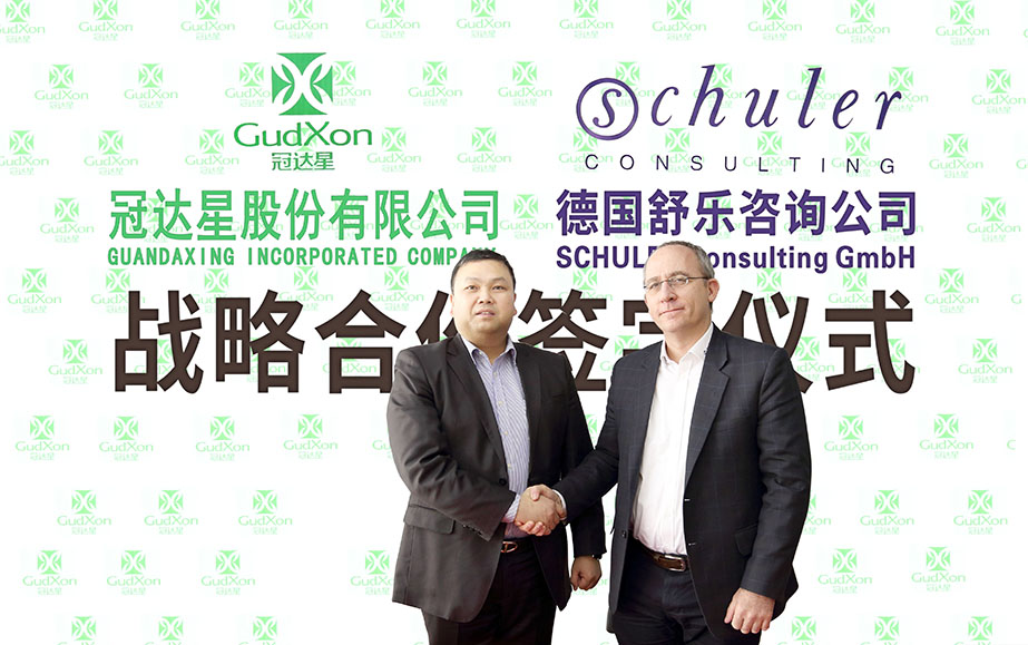 2017年1月22日,在冠達(dá)星股份有限公司總部大樓會(huì)議室,冠達(dá)星股份有限公司董事長(zhǎng)楊建明先生與德國(guó)舒樂(lè)咨詢(xún)公司亞太區(qū)總監(jiān)馬克先生進(jìn)行了戰(zhàn)略合作簽約儀式。