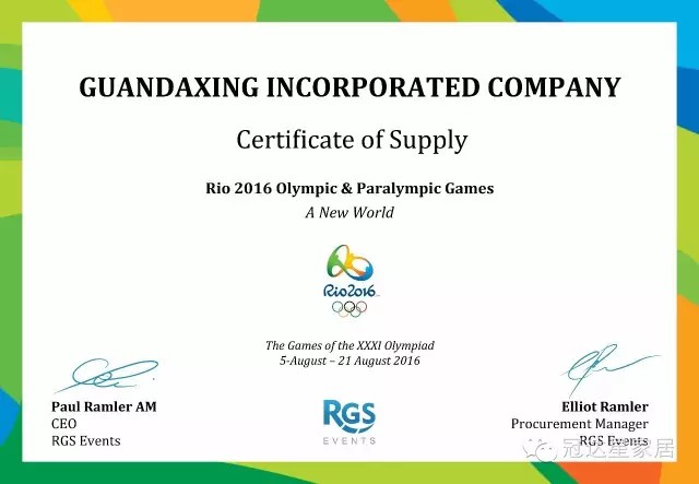 在2016年里約奧運(yùn)會(huì)期間,冠達(dá)星股份有限公司生產(chǎn)的便攜式布衣柜進(jìn)入里約奧運(yùn)村。 2016里約奧運(yùn)承建商為冠達(dá)星股份有限公司頒發(fā)供應(yīng)商…
